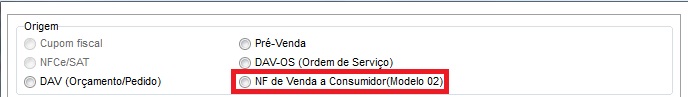 Selecione a opção NF de Venda a Consumidor (Modelo 02);