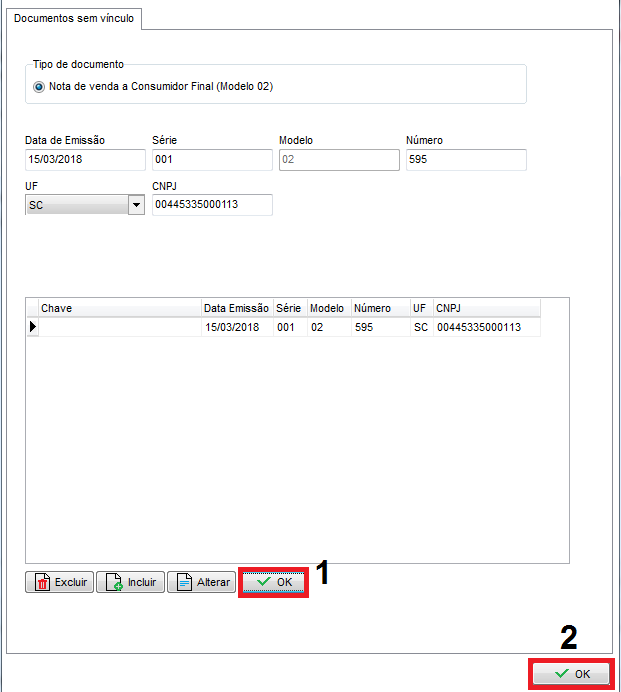 Importação da NF de Venda a Consumidor (Modelo 02)