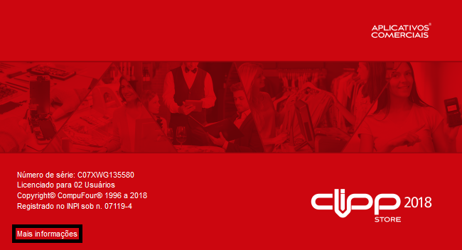 Primeiramente verifique se você com o sistema na versão 2018.0.0.9 ou superior, para isso, abra o Clipp Store e pressione F8. Na tela apresentada clique em Mais Informações: