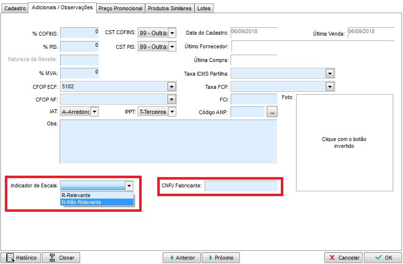3 . Preencha o campo Indicador de Escala e CNPJ Fabricante.