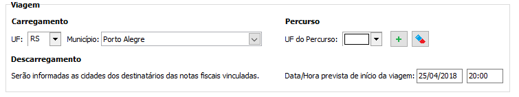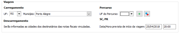 Ex: Foi emitido um MDF-e onde o transporte será iniciado no Estado do Rio Grande do Sul (RS) e será concluído no Estado de Santa Catarina (SC). Os Estados de RS e SC fazem fronteira e foi informado um percurso.