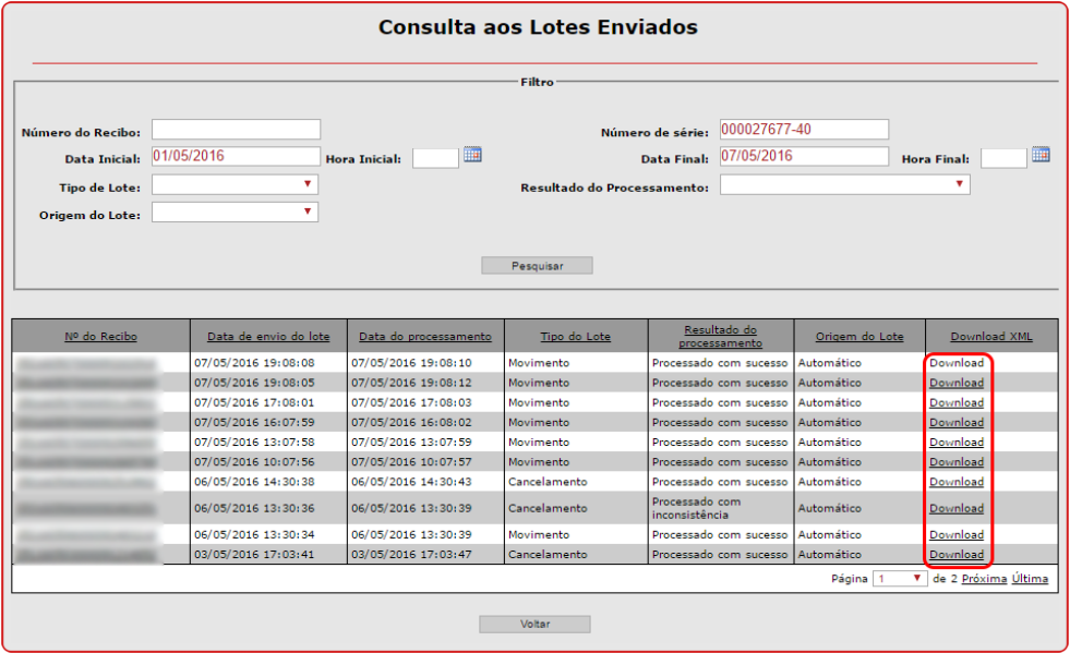 5. Clique em Download para baixar o XML do lote dos seus Cupons enviados.