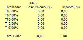 Primeiramente confira na sua Leitura X ou na Redução Z as alíquotas que deverão ser utilizadas em seus produtos. No exemplo abaixo, temos cadastradas as alíquotas de 5% (na posição 00), 7% (na posição 01), 10% (na posição 02), 12% (na posição 03) e 17% (na posição 04):