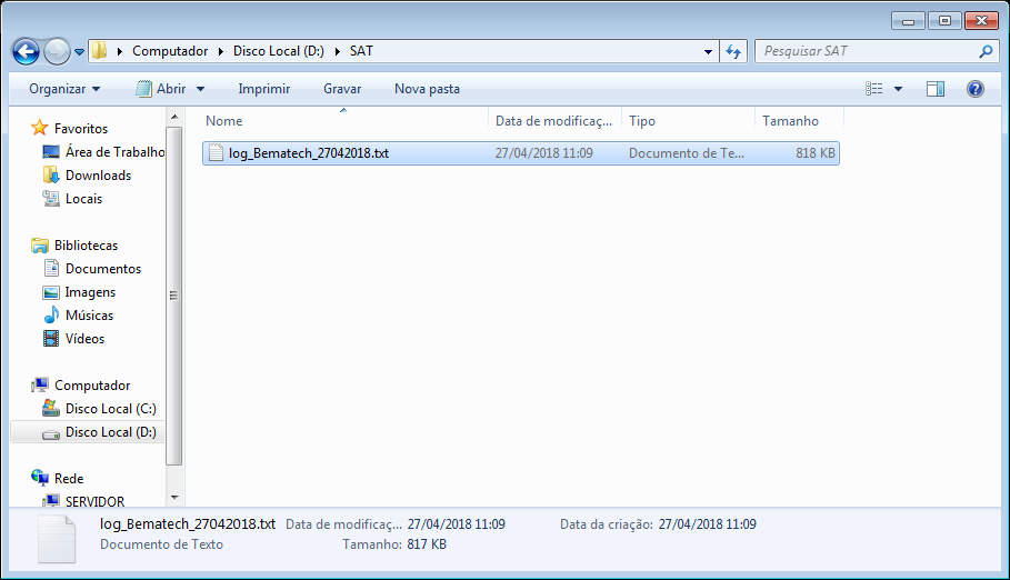 Por fim, se necessário poderá abrir ou encaminhar o arquivo TXT gerado: