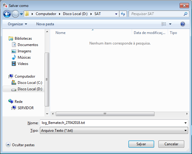 Caso necessário encaminhar estes LOGs, poderá salvar em um arquivo TXT do bloco de notas. Para isso, clique em Salvar e escolha o local para salvar: