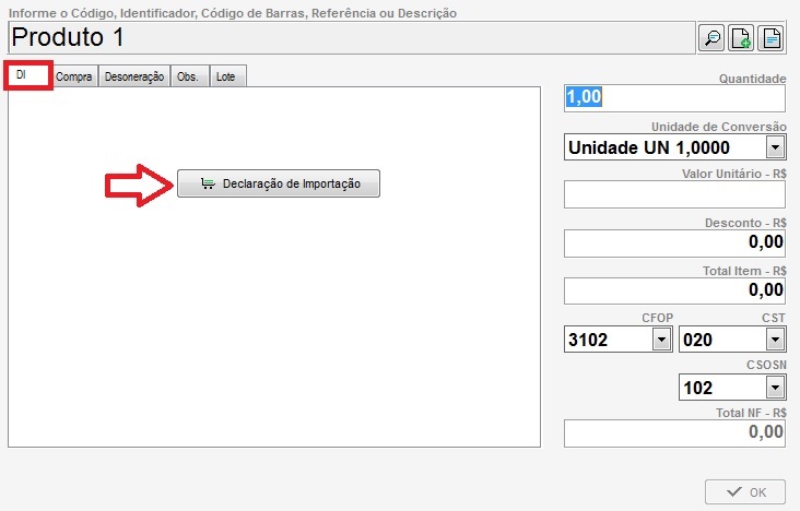 4. Localize o campo que corresponde a CNPJ do Adquirente ou do Encomendante e preencha esse campo com a informação correta (Essa informação consta na sua Declaração de Importação).