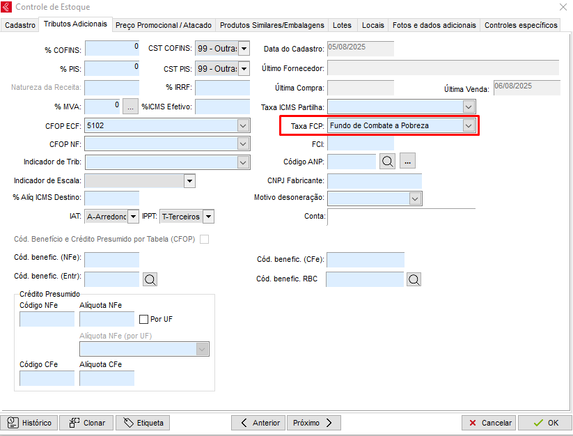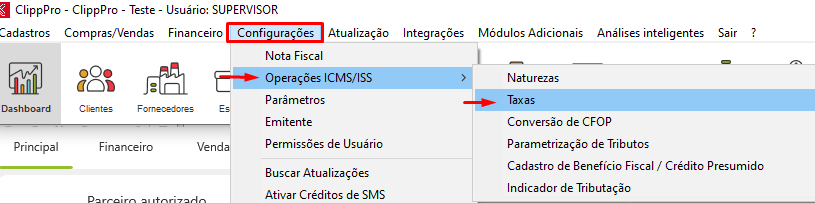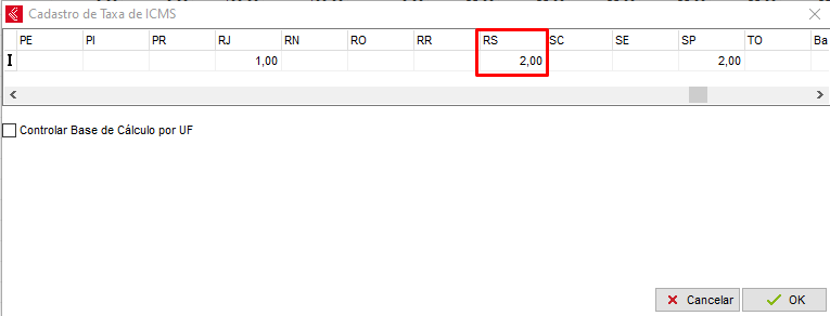 É válido lembrar que no cadastro da Taxa, será preenchida a alíquota conforme os dados da tabela dos Estados (https://www.nfe.fazenda.gov.br/portal/exibirArquivo.aspx?conteudo=5WzAprm60H4=). Caso tenha alguma dúvida em qual alíquota utilizar, consulte seu contabilista.