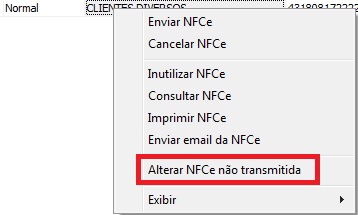 4 - Clique com o botão direito na NFCe em questão, e clique em "Alterar NFCe não transmitida".