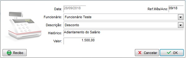 É possível também gerar um recibo do desconto, o recibo é gerado em duas vias, para que o estabelecimento fique com uma e o funcionário com a outra. Para gerar, clique no botão .jpg)