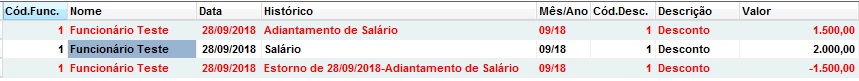 Feita a exclusão, o desconto aparecerá na cor vermelha, acompanhado do estorno.
