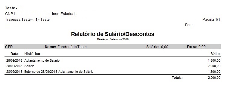É possível gerar relatório para ter controle de todos os descontos concedidos, para isso, clique no menu Relatórios e em seguida Totalização de Salários/Descontos...