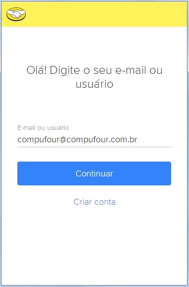 Abrirá a tela de login, insira aqui o e-mail vinculado à sua conta do Mercado Livre e clique em Continuar.