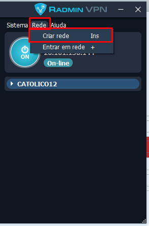 Após efetuar a instalação e abrir o Radmin VPN na empresa Matriz, clique em Criar nova Rede.