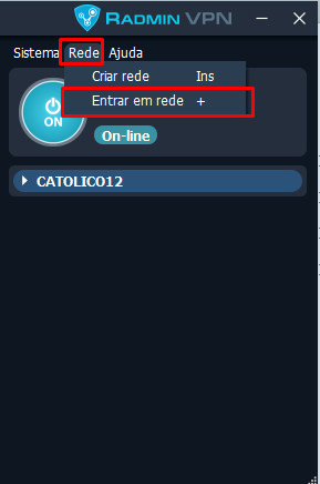 No(s) micro(s) das demais empresas, você deverá instalar também o Radmin VPN, porém, irá clicar no botão Rede > Entrar em rede