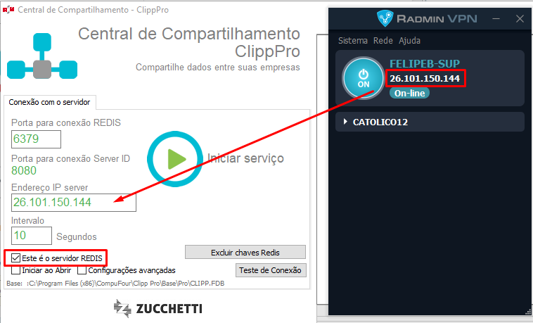 Defina o mesmo endereço que Encontra-se no Radmin, marque a opção Este é o Servidor REDIS. Clique então em