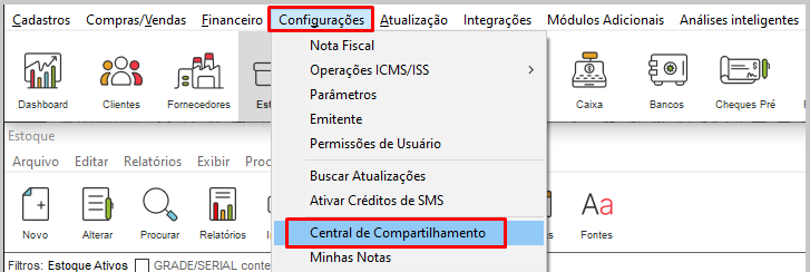 ATENÇÃO! Antes de começar o uso da Central de Compartilhamento é Imprescindível realizar backup! Para saber como realizar o backup do sistema clique aqui.