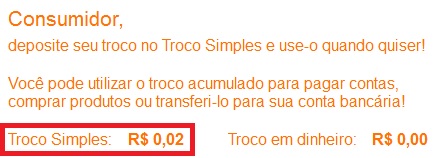É possível também que o consumidor realize o pagamento de sua compra com o valor acumulado no Troco Simples.