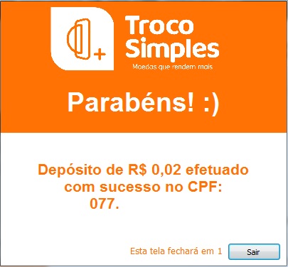 A partir daqui, o cliente já poderá verificar sua conta no Troco Simples e consultar os valores que foram transferidos.