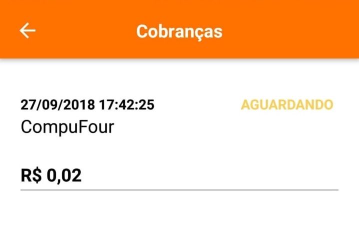 para acessar a tela onde terá o valor cobrado pelo estabelecimento. Clique sobre o valor da compra na tela Aguardando.