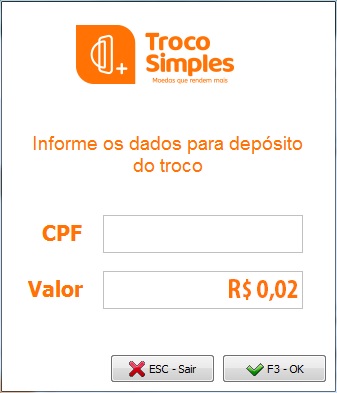 Irá carregar o valor do troco na tela do Troco Simples.