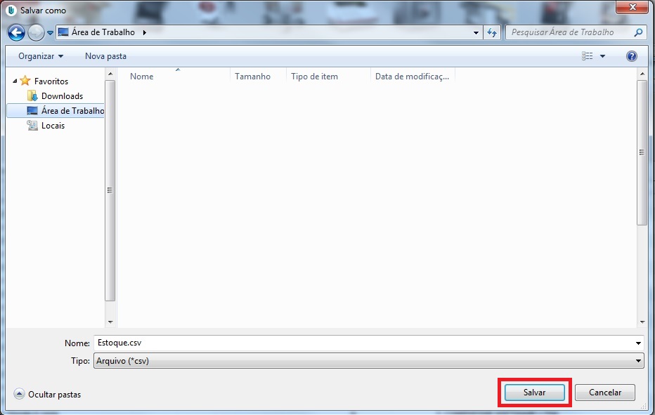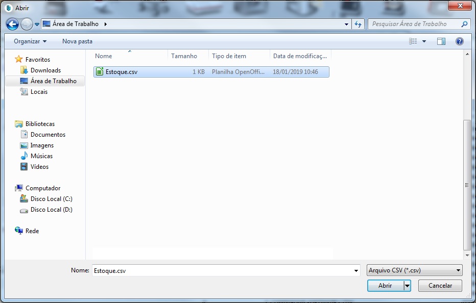 Após salvar o arquivo Estoque.csv é necessário encaminha-lo por e-mail, para que a equipe ADV Integra faça as devidas análises das informações dos itens no estoque.