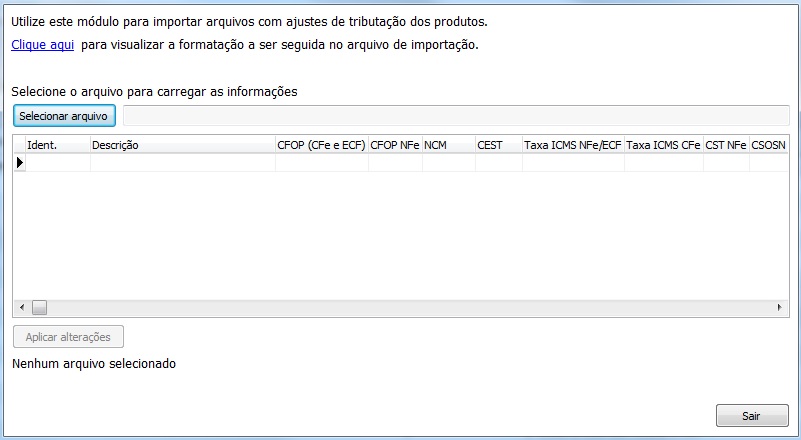 Caso deseje visualizar a formatação a ser seguida no arquivo de importação, clique sobre a opção