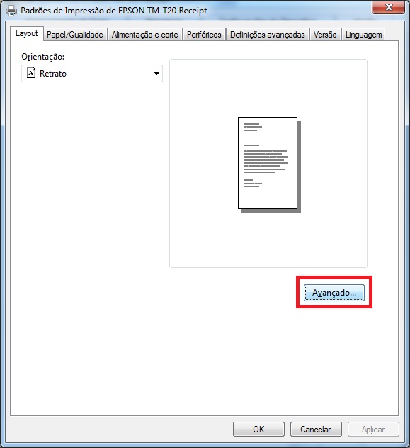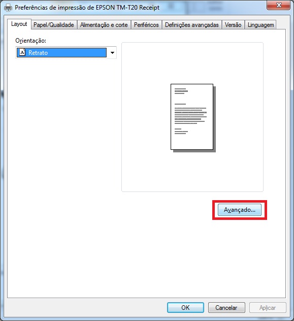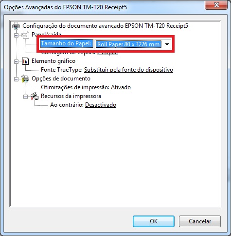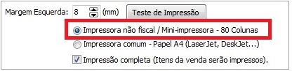 Para que todos os itens sejam impressos é necessário configurar o papel da impressora nas configurações do driver.