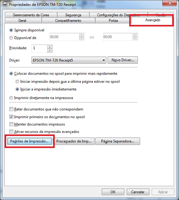 ATENÇÃO: A situação é referente aos drivers da impressora, caso persista após as configurações abaixo deverá entrar em contato com o suporte da mesma!