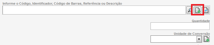Caso o produto Complemento ainda não esteja cadastrado, clique no botão  disponível ao lado do campo de pesquisa para cadastrar um novo produto.
