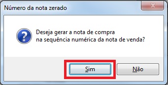 • Ao pressionar a tecla enter após o lançamento das informações acima, o sistema irá questionar se deseja gerar a nota na sequência numérica da nota de venda, clique em Sim.