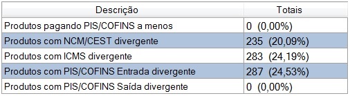 Na parte inferior esquerda da tela será exibido o relatório com o resultado da simulação, com as informações tributárias do que está incorreto no estoque, como esse serviço é gratuito não irá detalhar quais os itens estão errados, é apenas uma simulação.