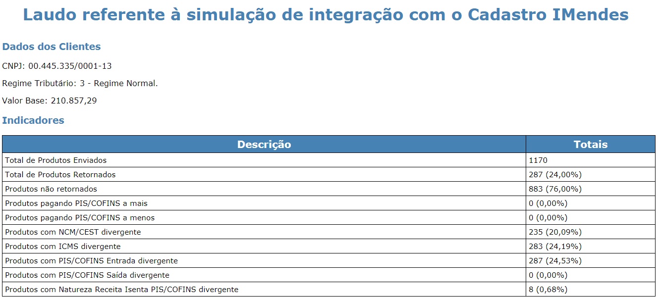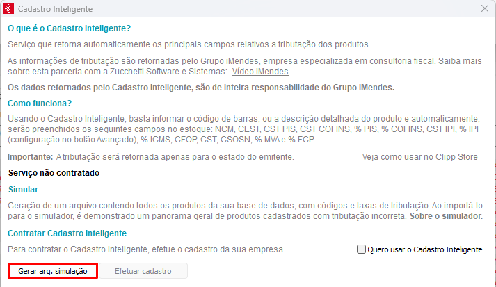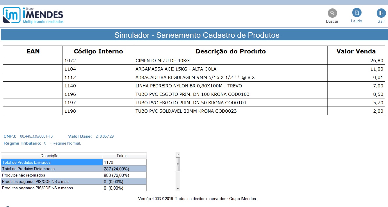 É disponibilizada de forma gratuita a geração do arquivo de simulação, onde será gerado um laudo dos itens cadastrados no estoque com tributação incorreta.