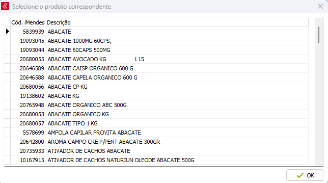 Será carregada a tela onde poderá escolher qual o produto que se enquadra com o que está cadastrando, escolha qual deseja e clique no botão .jpg)