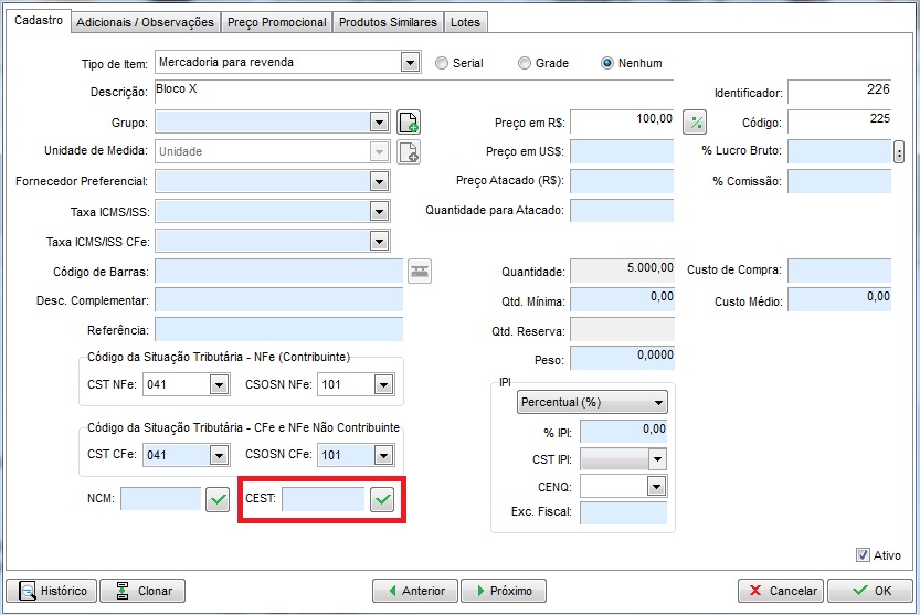 Após identificar qual item está incorreto, abra o cadastro do mesmo no Clipp Store e apague o conteúdo do campo CEST.