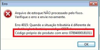 Ao enviar os arquivos do estoque no bloco X retorna a seguinte mensagem: