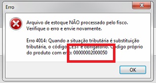 Ao enviar os arquivos do estoque ao fisco é apresentada a mensagem: