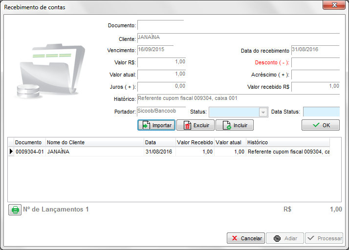 Neste momento serão listadas na tela as contas a receber que correspondem aos boletos recebidos. Confira os lançamentos, confirme no OK e depois clique em Processar.