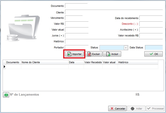 Será apresentada a tela onde deverá clicar no botão Importar.