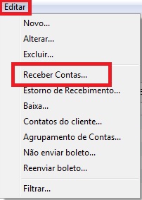 Para a importação, acesse o módulo de Contas a Receber clique no menu Editar - Receber Contas.