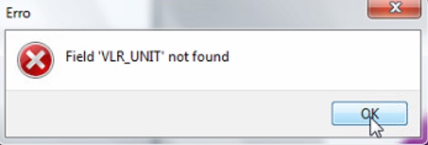 Field 'VLR_UNIT' not found (apenas versão 2018).