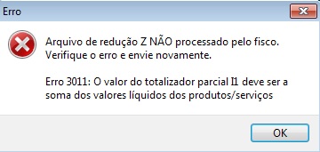 A mensagem é exibida quando o valor dos totalizadores no arquivo de redução Z estiverem incorretos, quando ocorre diferença em um dos totalizadores "F1, I1, N1, T07,T12,T25,T17".