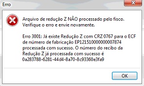 Erro 3001: Já existe Redução Z com CRZ 0767 para o ECF de número de fabricação