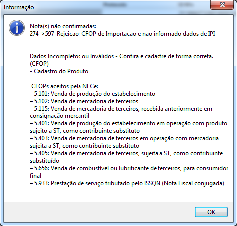 Rejeição: CFOP de Importação e não informado dados de IPI