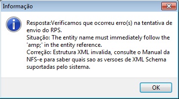 Situação: The entity name must immediately follow the amp in the entity reference - Ao enviar NFS-e