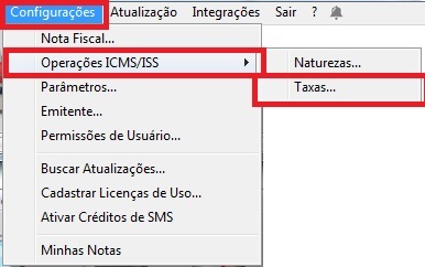Clique em Configurações - Operações ICMS/ISS - Taxas.