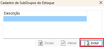 Será apresentada a tela de cadastro, clique no botão Incluir.