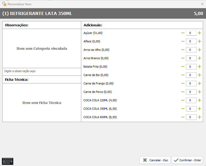 Lance os itens no pedido pelos favoritos ou de forma manual.