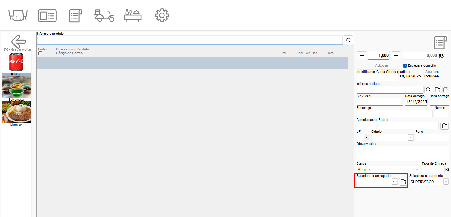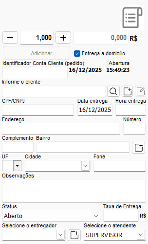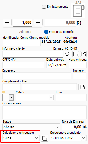 Será possível lançar o pedido e ao lado do campo de entregador, efetuar o cadastro do mesmo, caso não tenha sido efetuado
