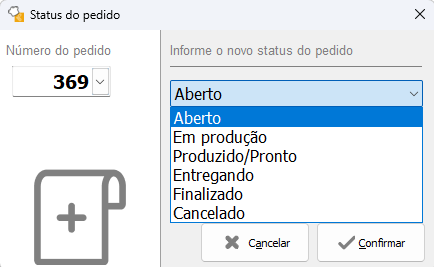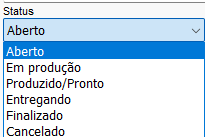 Após gravar o pedido, poderá alterar o status do mesmo.