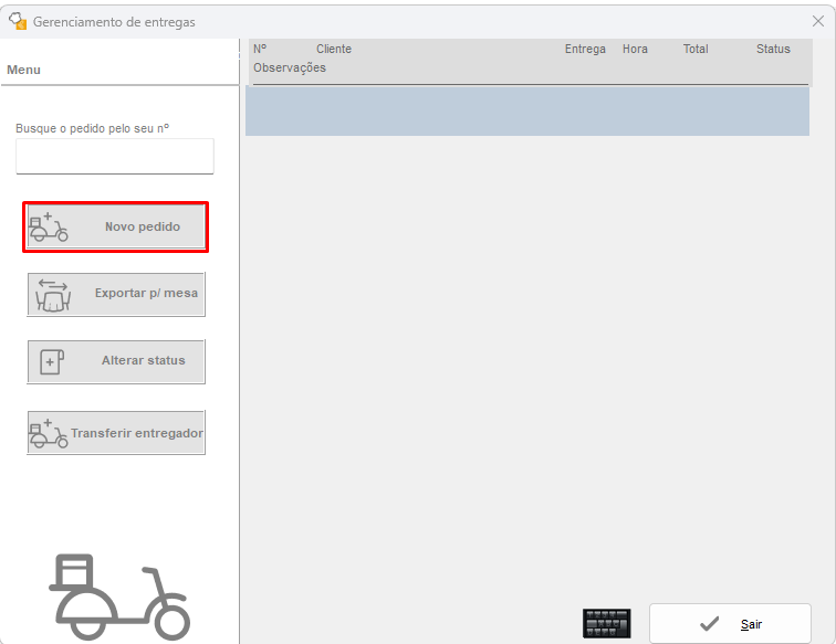 Para abrir um pedido através do Gerenciamento de entrega, clique no botão